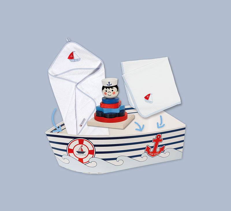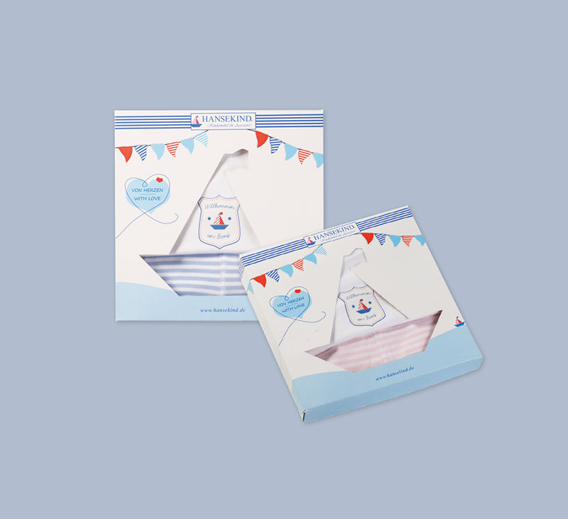 Geschenkverpackungen für ein Baby- und Kinderaustattungslabel.